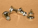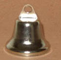 5324 Four 14mm silver metal bells to hang in your tower. Each has a ringer and a hole to hang it up. 5/8in high 1/2in across. Price $1.50