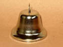 5328 Silver metal bell with ringer and hole to hang it up. 2in across, 1-3/4in high. Price $1.70